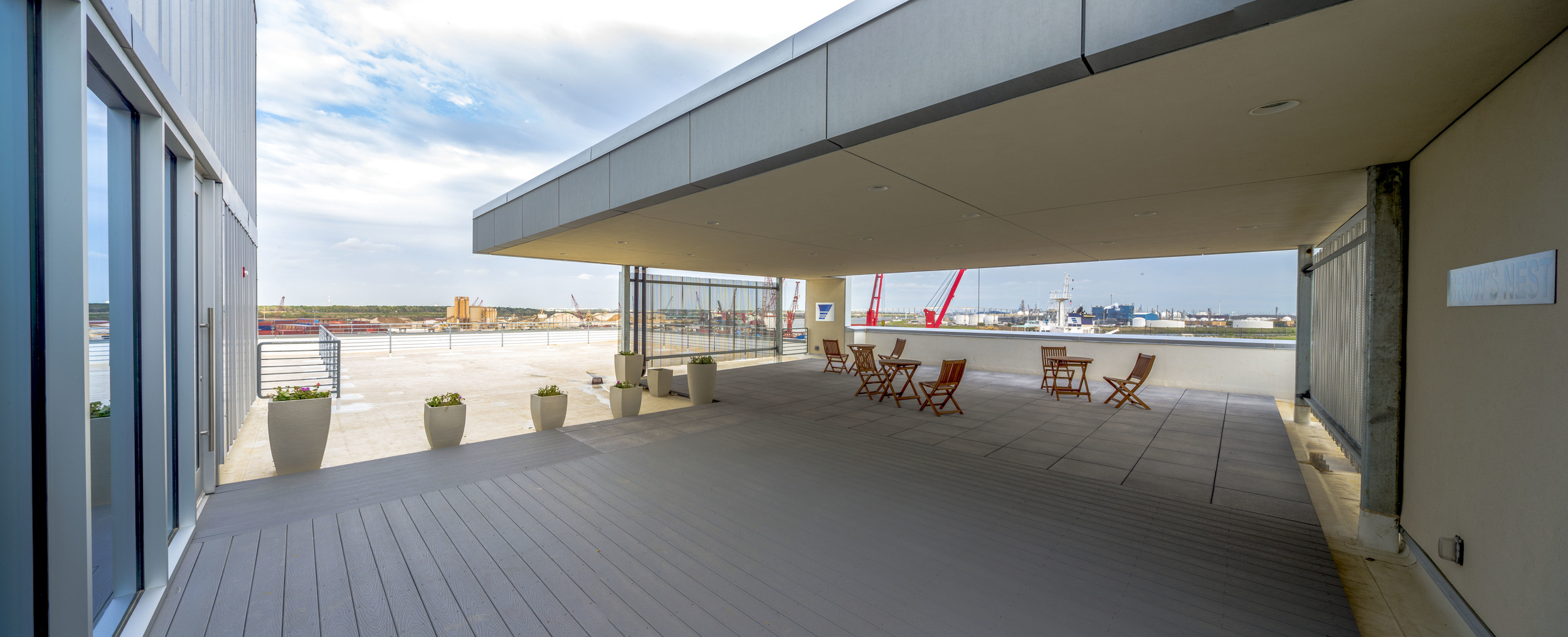 20,000 s.f., five-story, corporate office building. The steel framed building includes an exterior consisting of a Morin metal wall panel rain screen, Kalwall, and curtain wall system. The interiors contained many unique features including illuminated 3-form covered walls in the elevator lobbies, state of the art conference room on the 4th floor overlooking the Houston Ship Channel, employee gym, a catering area and a 2,500 s.f. covered roof terrace.